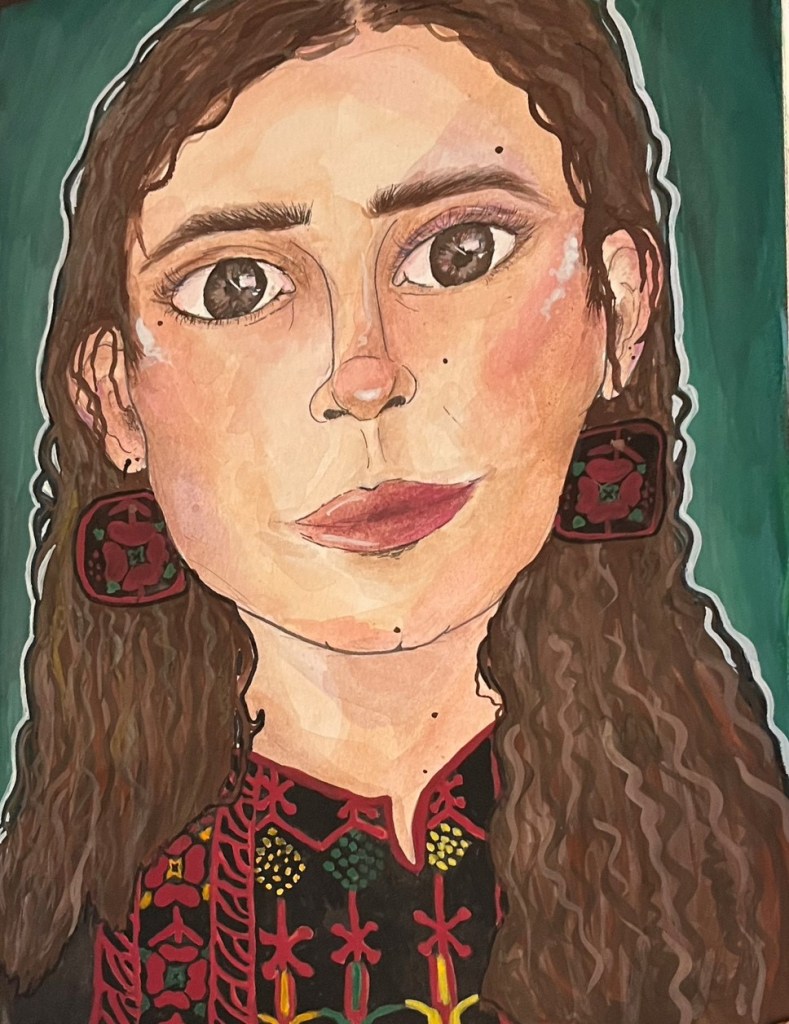 Mariam Darraj is a rising senior at Dulaney High School, where she is a part of National Honors Society, National English Honors Society, and other groups. She served as chief of set crew for the Dulaney Theater Company and she is Vice President of the Dulaney chapter of the National Art Honors Society. Her artwork, “Girl from Ramallah,” is inspired by her Palestinian heritage.
